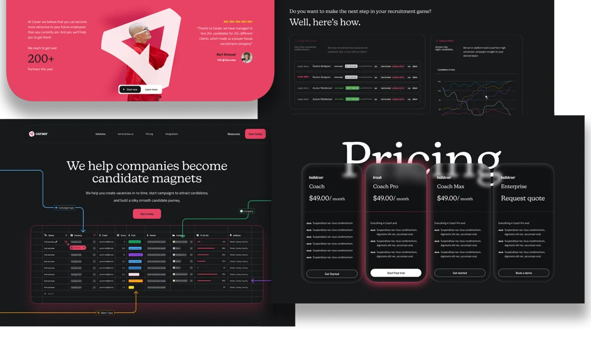 We start with a conversation about your company, goals and target audience. What do you want to achieve? Who are your customers? What style fits your brand? You provide text, logo and images. We think along and make a plan.